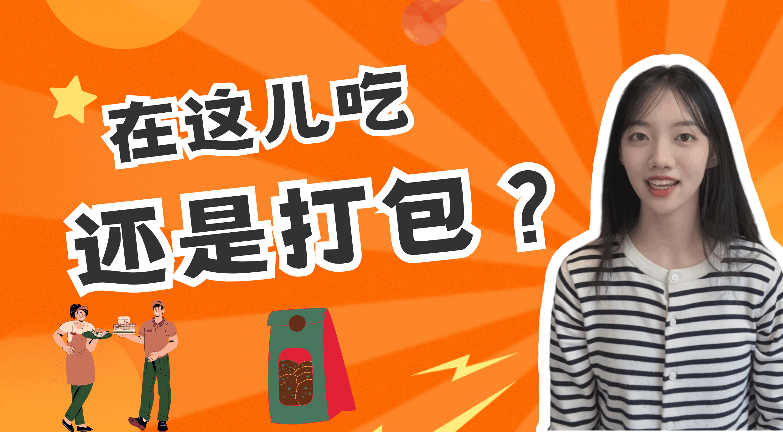 中文教学短视频:在这儿吃还是打包?